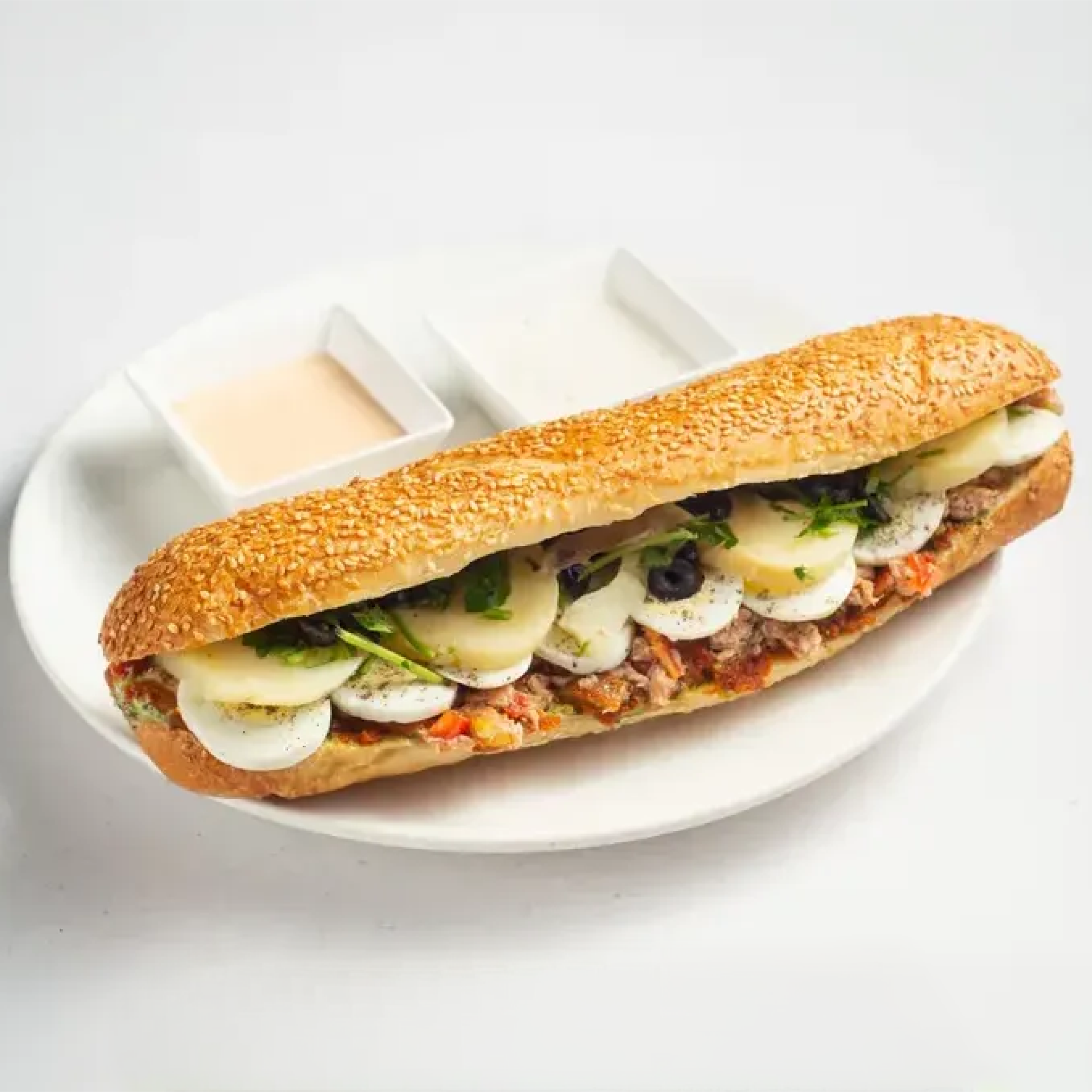טונה, ביצה קשה, תפוח אדמה, ממרח תונסאי, לימון כבוש וזיתי קלמטה